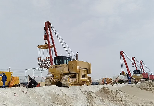 阿聯(lián)酋地區(qū)氣候炎熱,夏季氣溫常高達(dá)50攝氏度以上,加之沙塵環(huán)境復(fù)雜,對(duì)工程設(shè)備的性能提出了高要求。中蘇海工履帶吊管機(jī)以其強(qiáng)大的動(dòng)力系統(tǒng)、高效的散熱設(shè)計(jì)以及堅(jiān)固的結(jié)構(gòu),完美適應(yīng)了這些挑戰(zhàn),確保了施工的高效性和連續(xù)性。設(shè)備在高溫環(huán)境下運(yùn)行穩(wěn)定,操作靈活,極大地提升了施工效率,贏得了現(xiàn)場施工人員的一致好評(píng)。